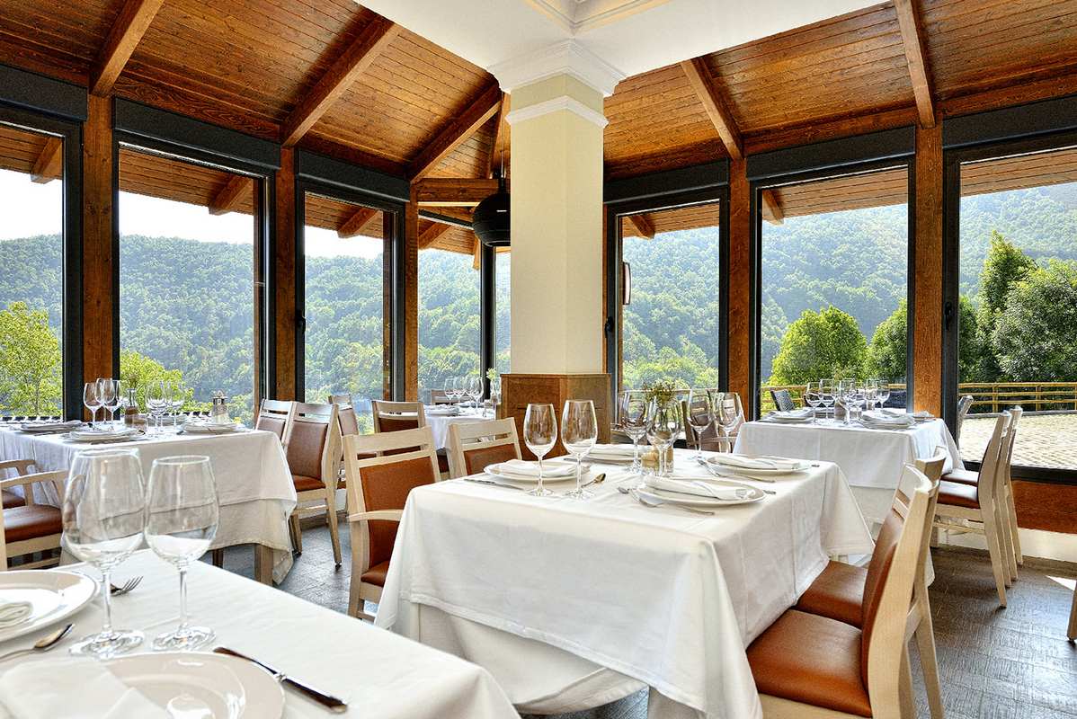 Instalaciones: Concepción abierta al entorno resuelta con la situación de nuestras mesas en una galería/solana con amplia visibilidad del bosque de Muniellos, dotado de un parking con capacidad para 15 vehículos además de tener en cuenta a los mas pequeños disponiendo de un jardín/parque infantil cerrado equipado. Tambien disponemos de dos terrazas con vistas.