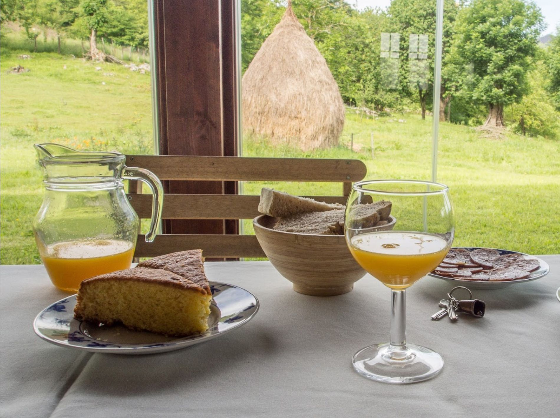 La casa rural está en una gran finca cerrada con árboles frutales, y vistas a la Sierra del Sueve, al Río Sella, al Pico Pierzu y al Mirador del Fitu. Un lugar a un paso de Cangas de Onís, desde el que disfrutar de la tranquilidad y la naturaleza con el máximo respeto hacia ella.